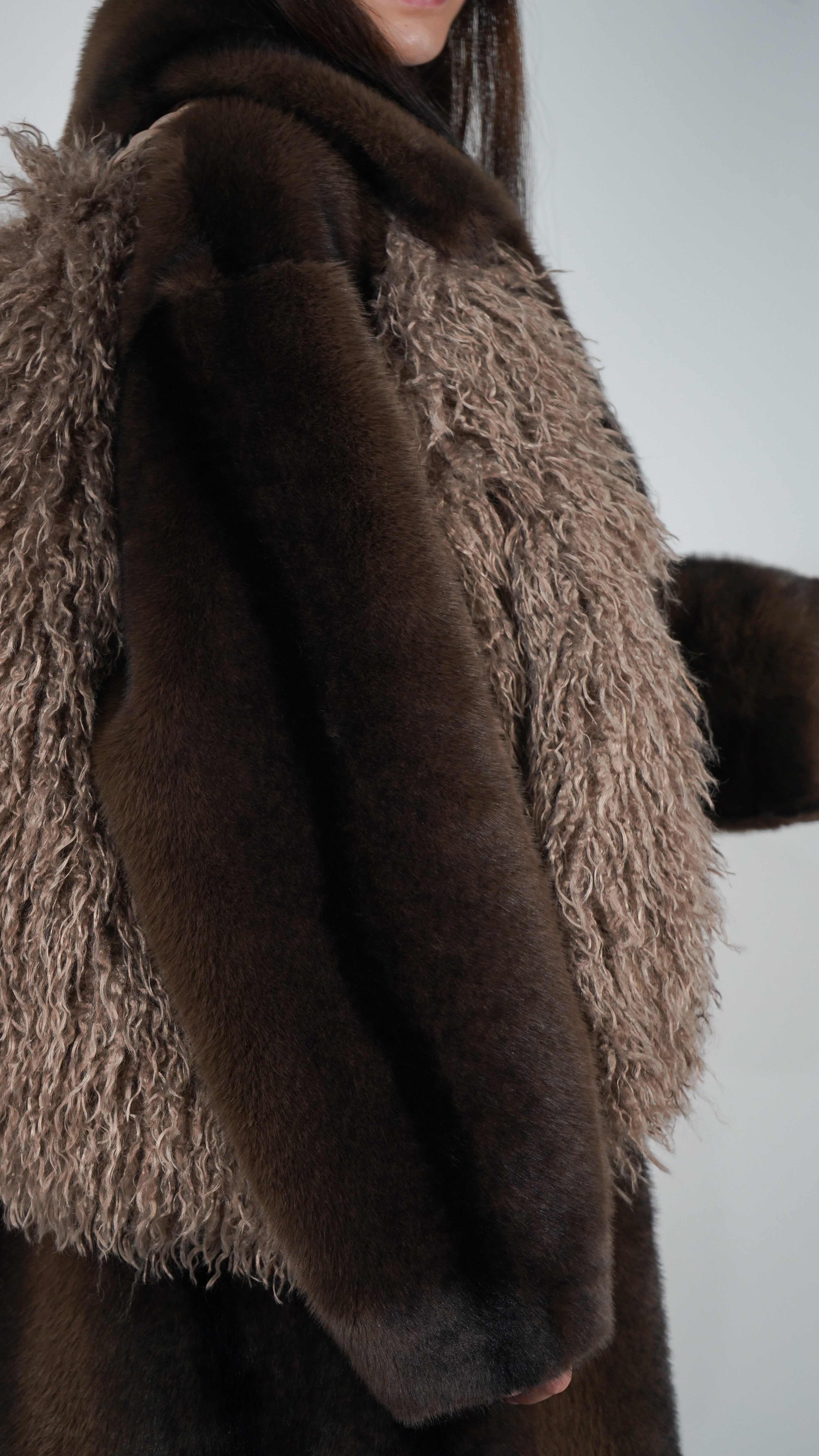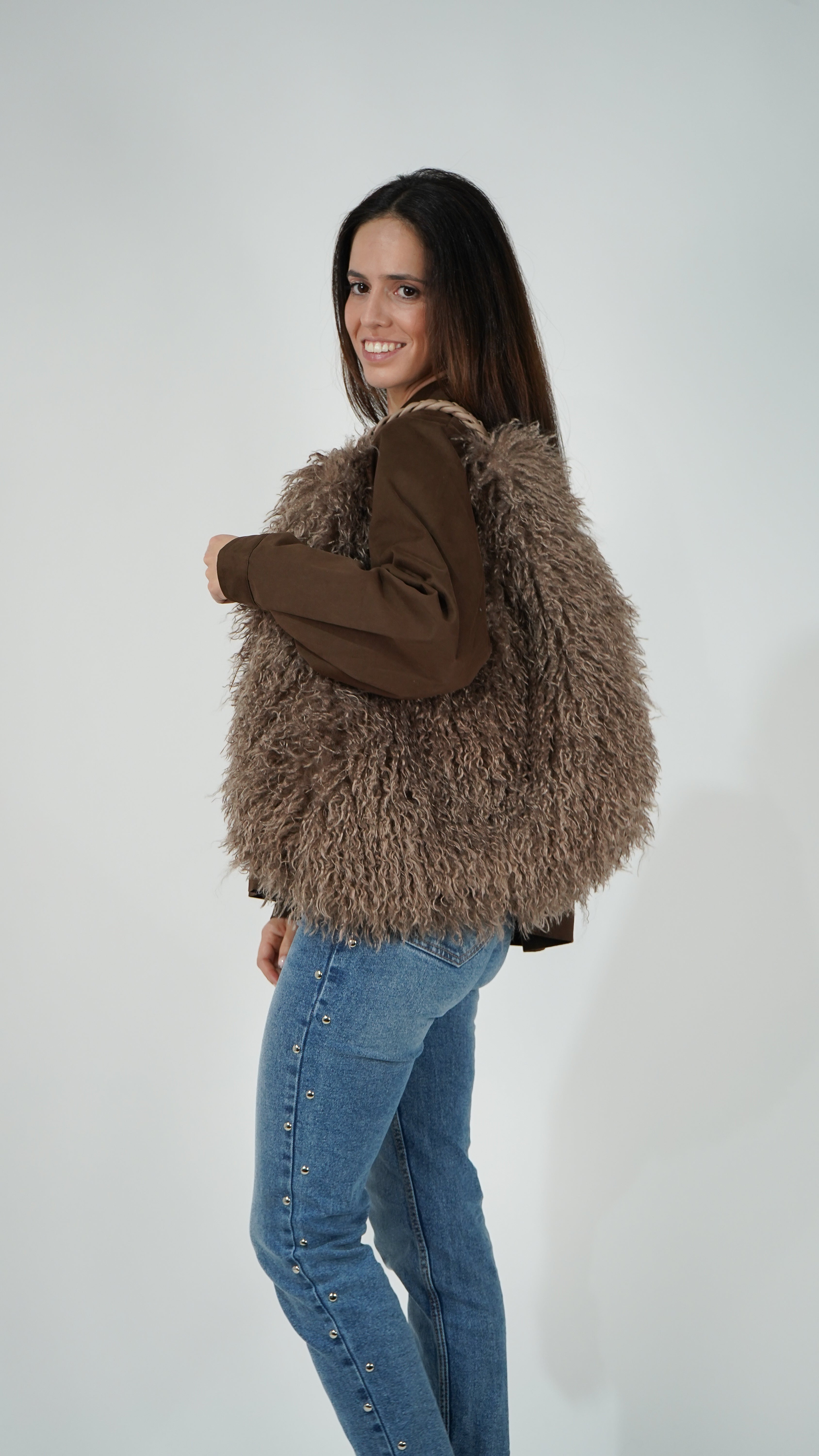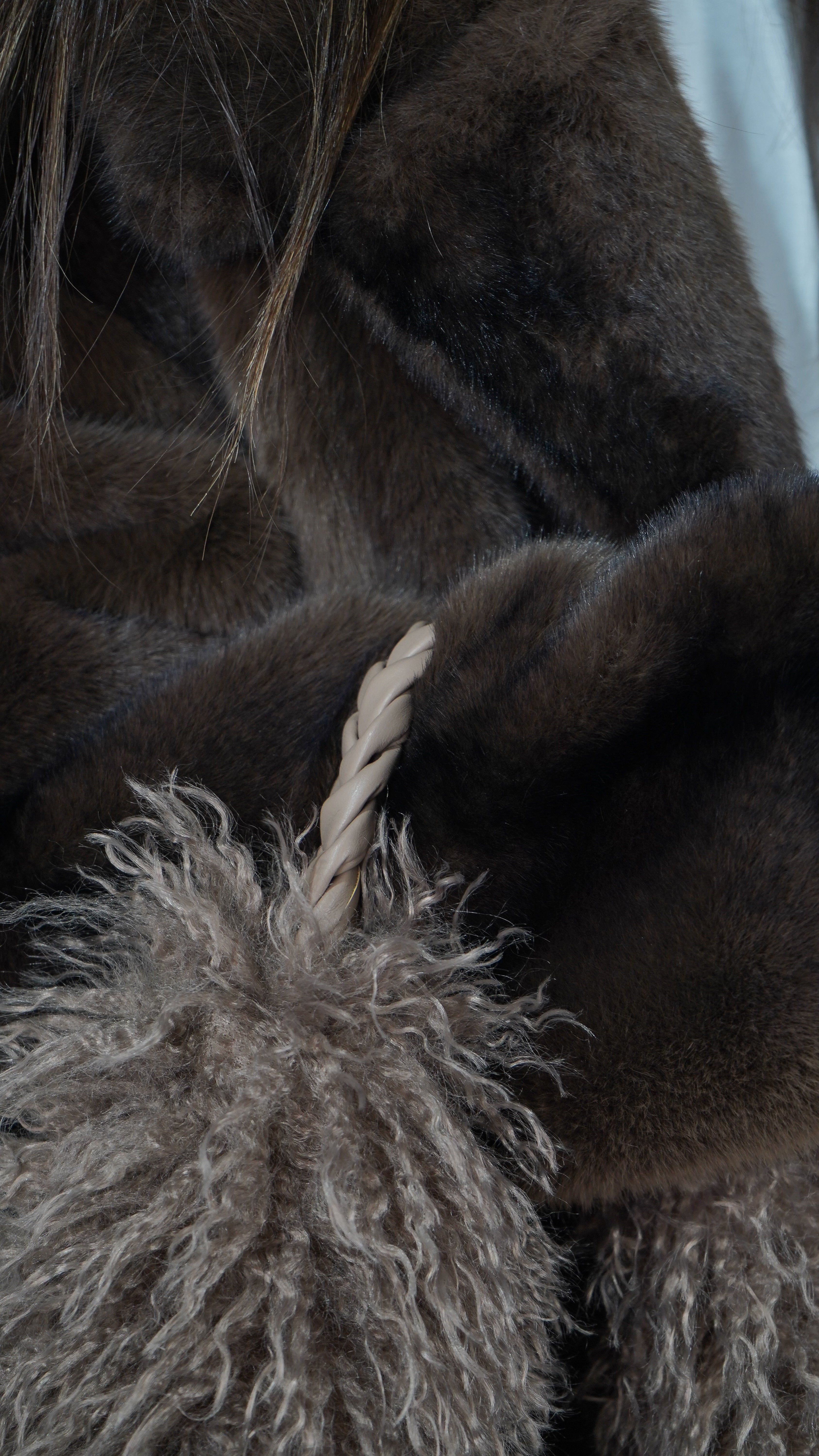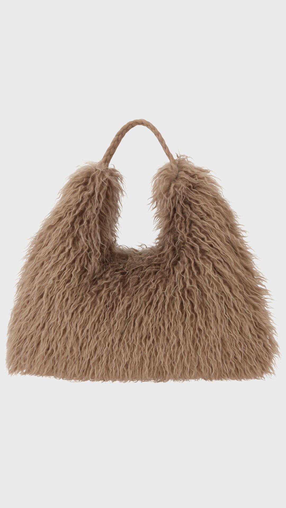 El bolso maxi es un imprescindible versátil: su silueta generosa en piel sintética rizada combina capacidad y sofisticación, mientras que las asas trenzadas en piel vegana aportan un toque artesanal y único. Puede llevarse al hombro o cruzado gracias a su correa desmontable, adaptándose con facilidad a cada momento del día.