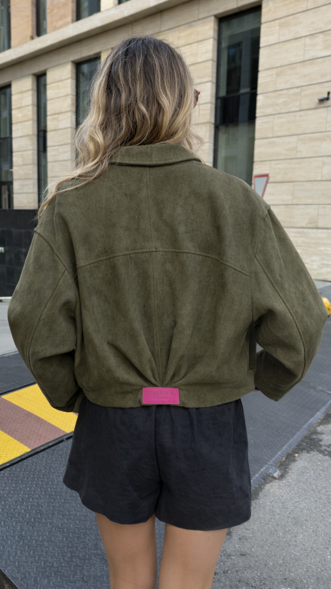 Crafted from premium suede-effect fabric with an ultra-soft touch, it offers a soft and enveloping feel against the skin. Its structured exterior adds body and durability, maintaining its impeccable shape over time. A versatile piece that combines elegance and attitude in a single design.