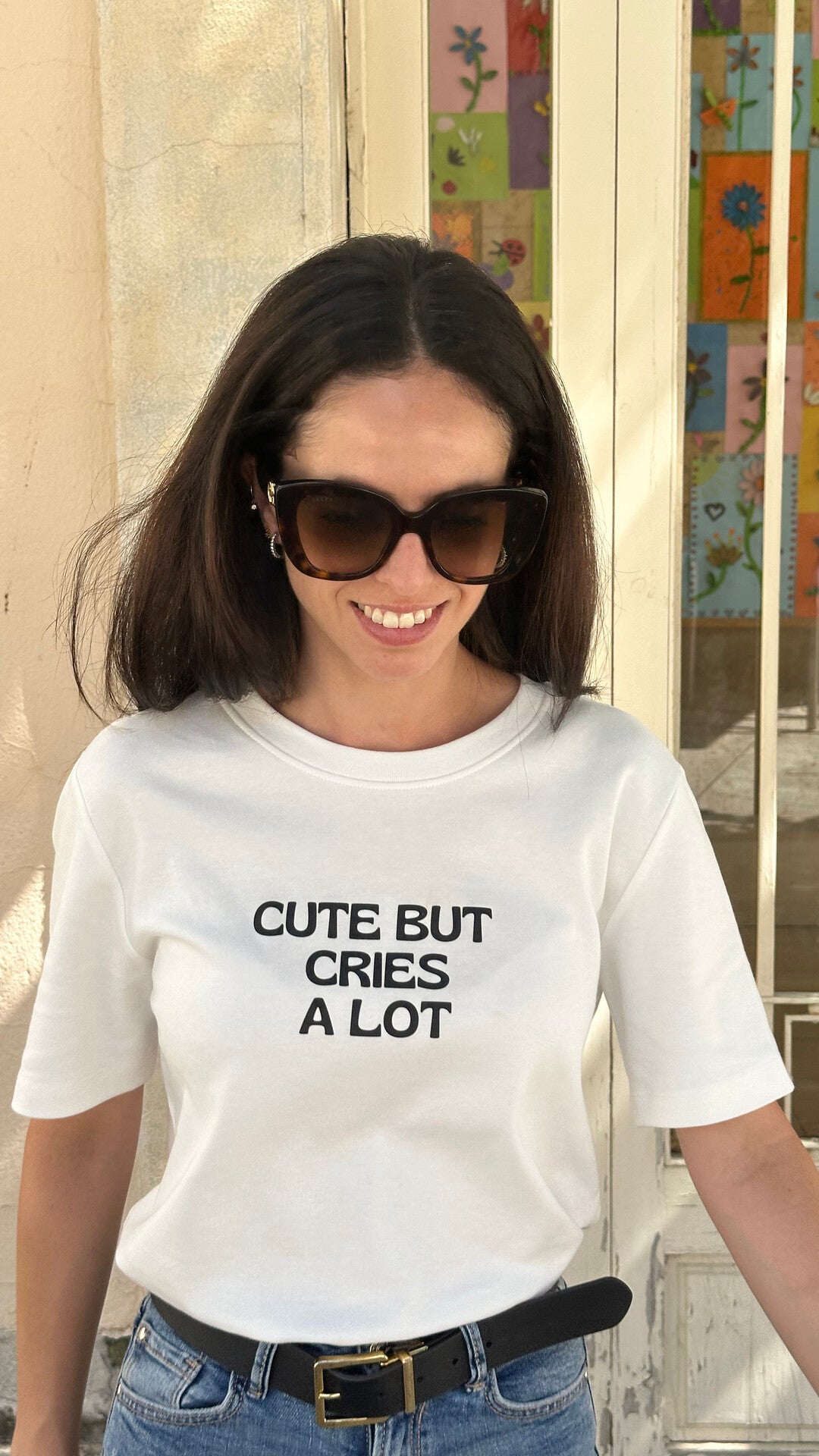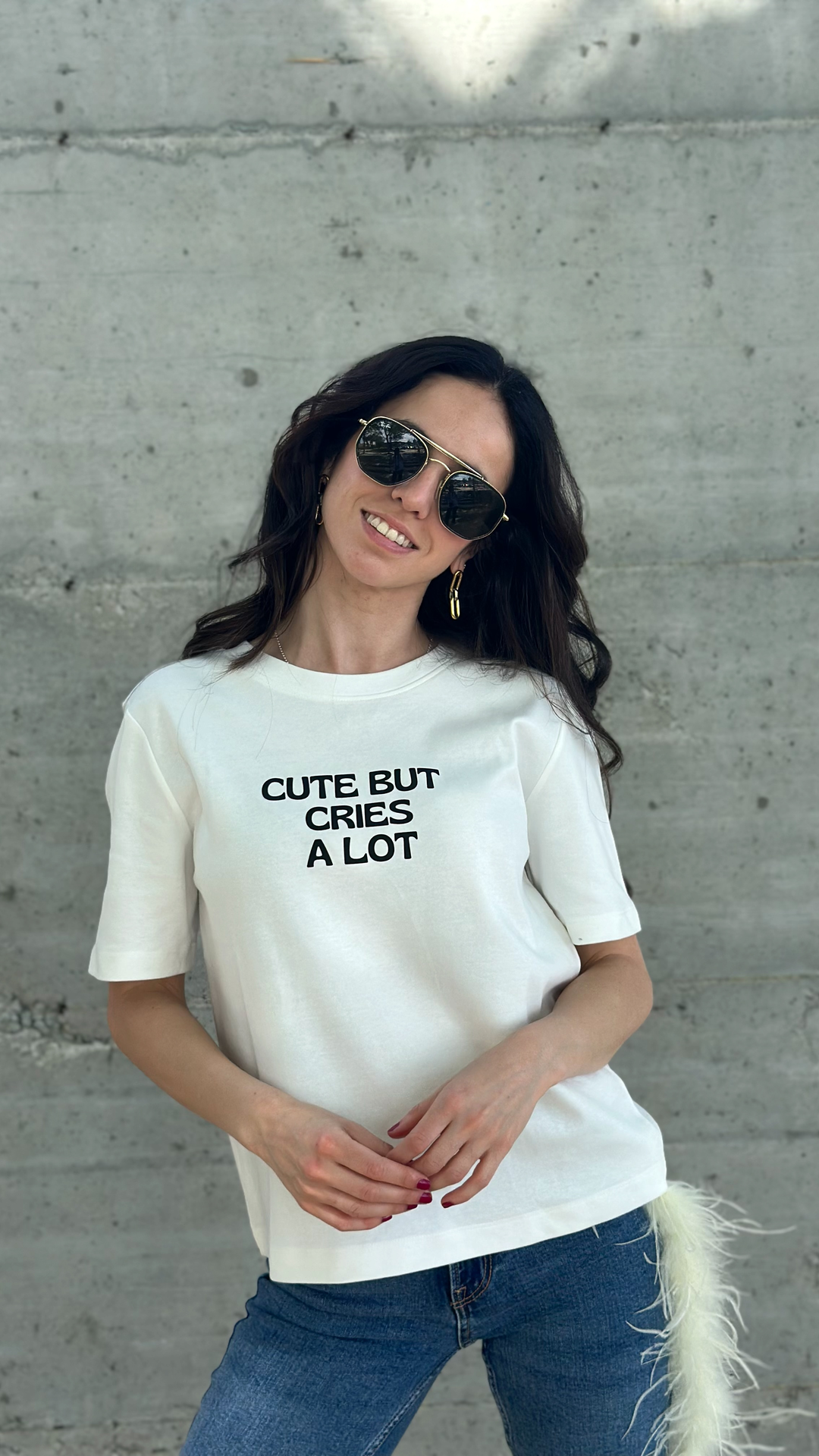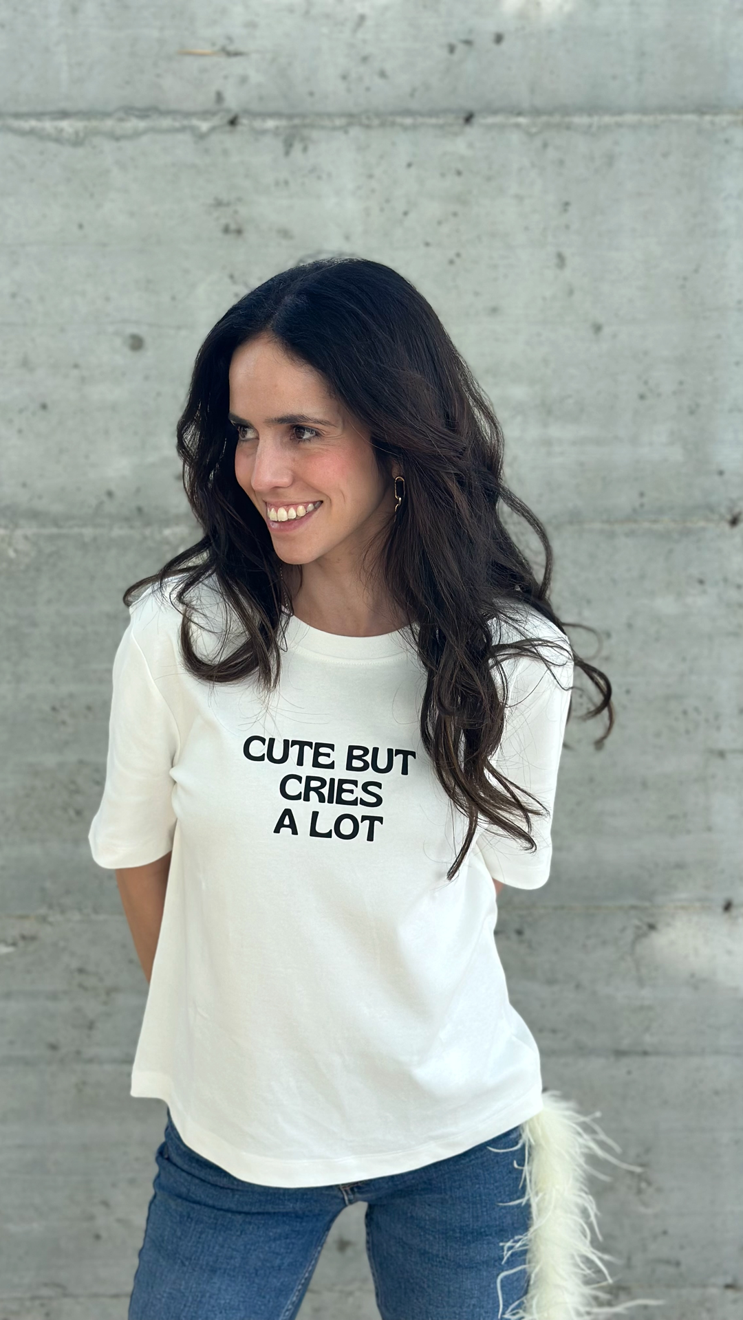 Camiseta básica regular fit de manga corta y cuello redondo en algodón blanco. Estampado con tecnología DTF.
