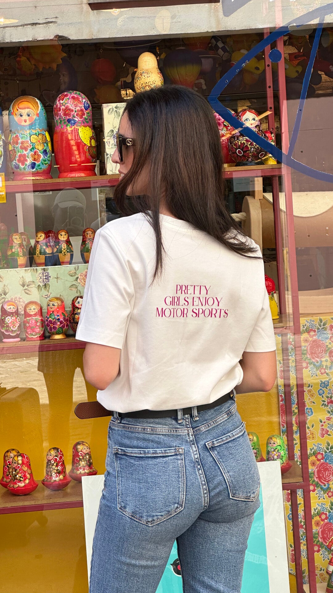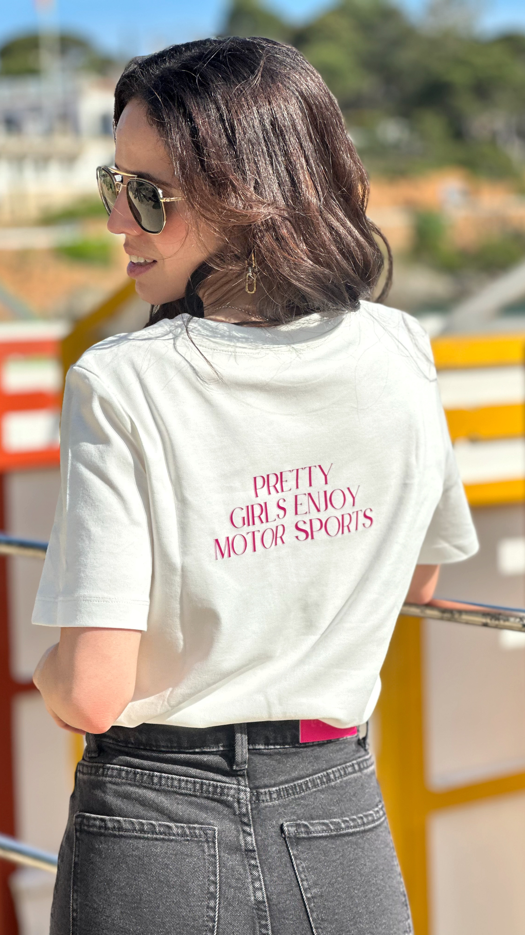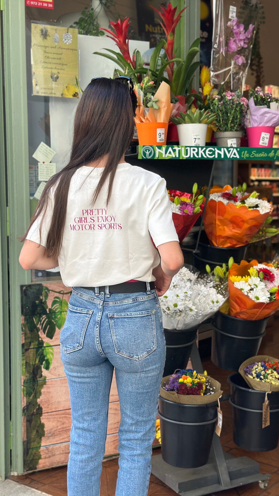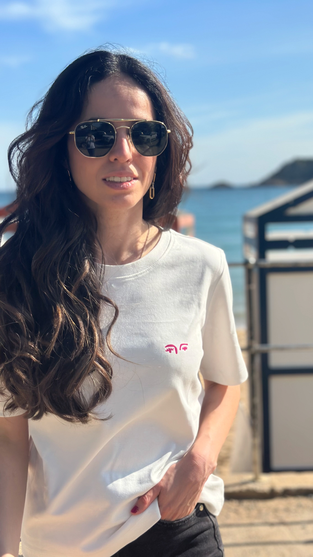 Camiseta básica regular fit de manga corta y cuello redondo en algodón blanco. Estampado con tecnología DTF.