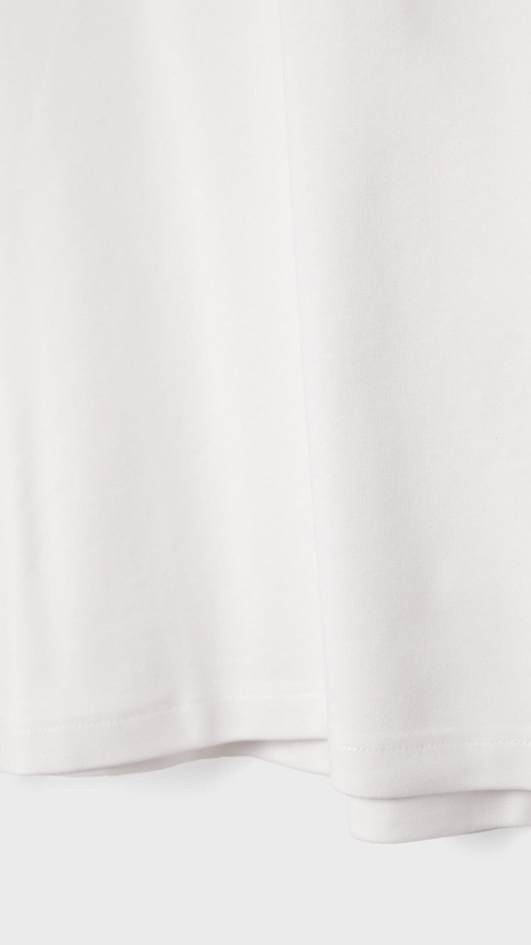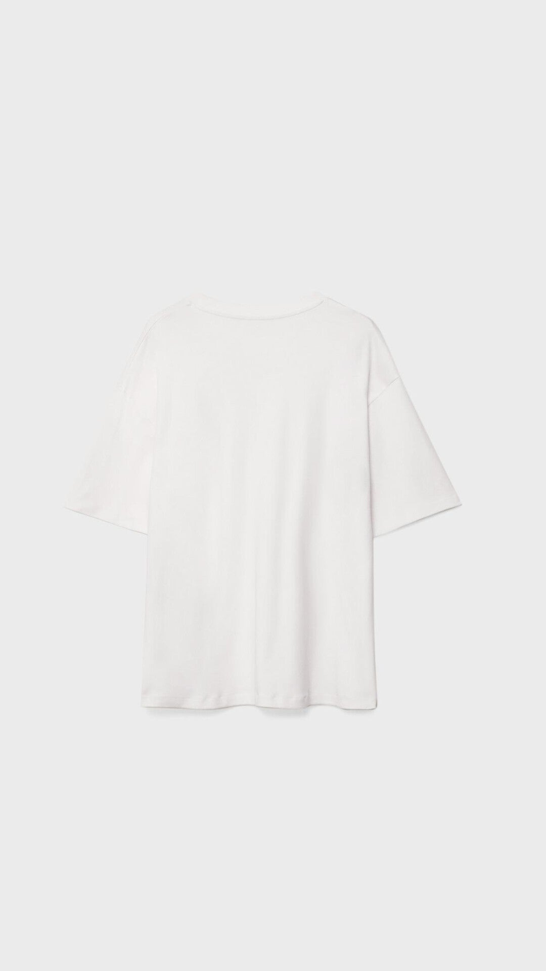 Camiseta oversize básica de manga corta y cuello redondo en tejido de peso medio-grueso color crudo. Estampado con tecnología DTF.