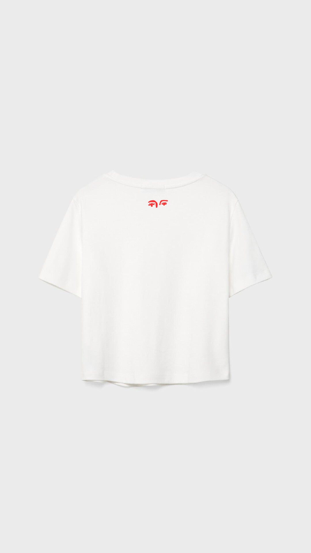 Camiseta básica regular fit de manga corta y cuello redondo en algodón blanco. Estampado con tecnología DTF.